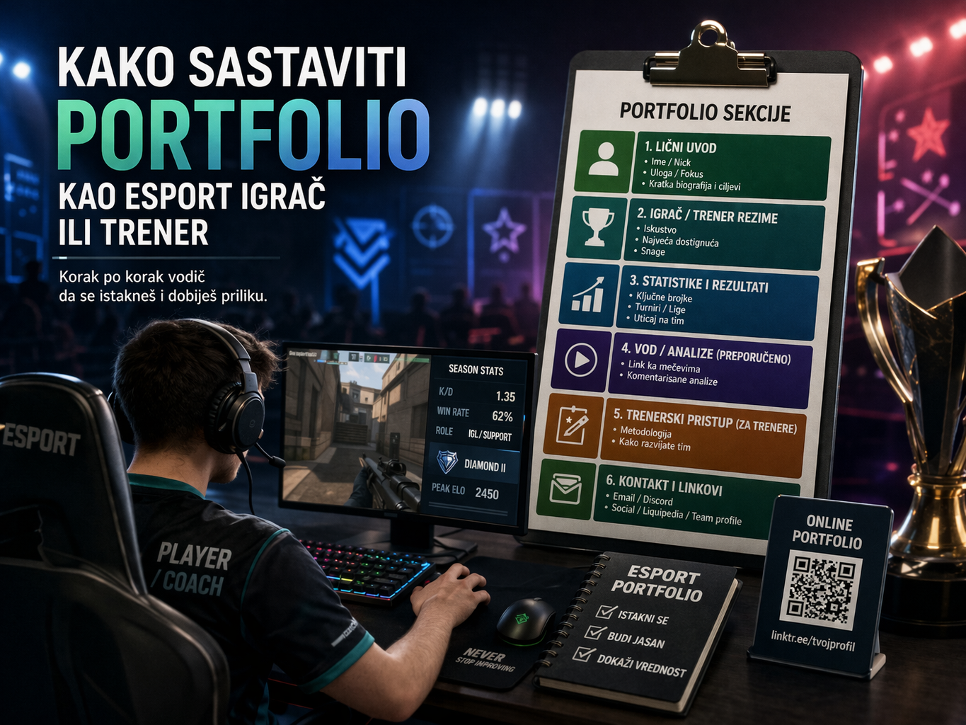 Esport portfolio, zašto je ključan za ulazak u ozbiljan tim Ako želiš da pređeš iz casual igranja u ozbiljniji esport, moraš da shvatiš jednu stvar, skill sam po sebi nije dovoljan. Postoje hiljade igrača koji imaju dobar aim, solidan rank i mnogo sati igre. Ono što pravi razliku jeste kako taj skill predstaviš. Tu dolazi…